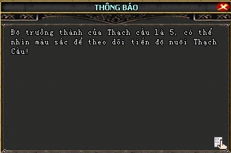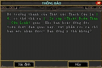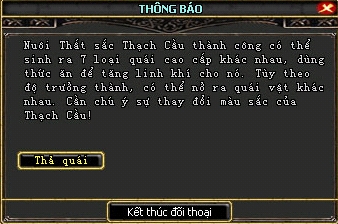 Sau khi cho ăn đến một mức độ nhất định, khi nhấp chuột vào Thạch Cầu sẽ xuất hiện hộp thoại thông báo có thể thả quái.