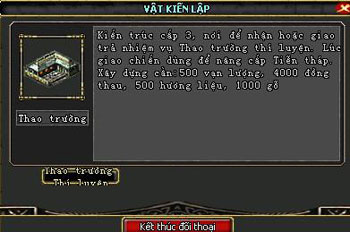 Lãnh địa: có thành thị cấp 3 và đã xây dựng Thao trường.