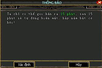 Đại Phu thông báo boss chỉ xuất hiện trong 15 phút. Trong vòng 15 phút chưa giết được thì boss sẽ biến mất, nhiệm vụ thất bại.