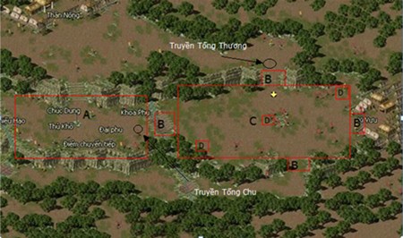- Vị trí A: Khu vực hòa bình không thể PK. Kỳ sĩ có thể nâng cấp trang bị, tăng cao đẳng cấp tại đây.